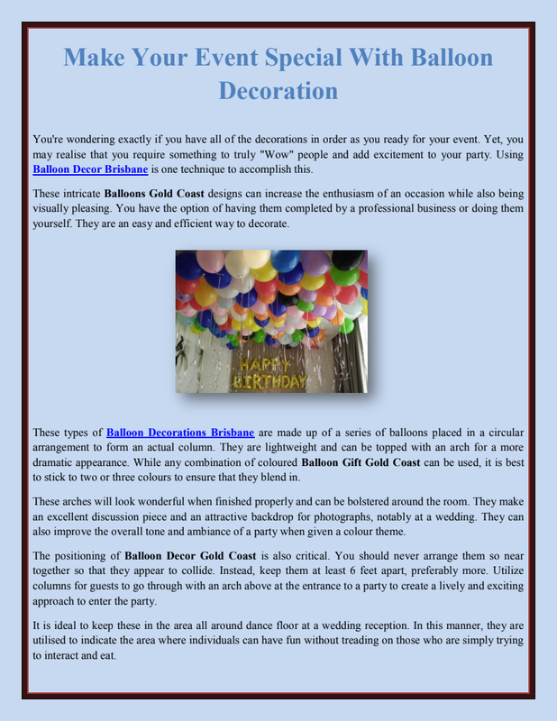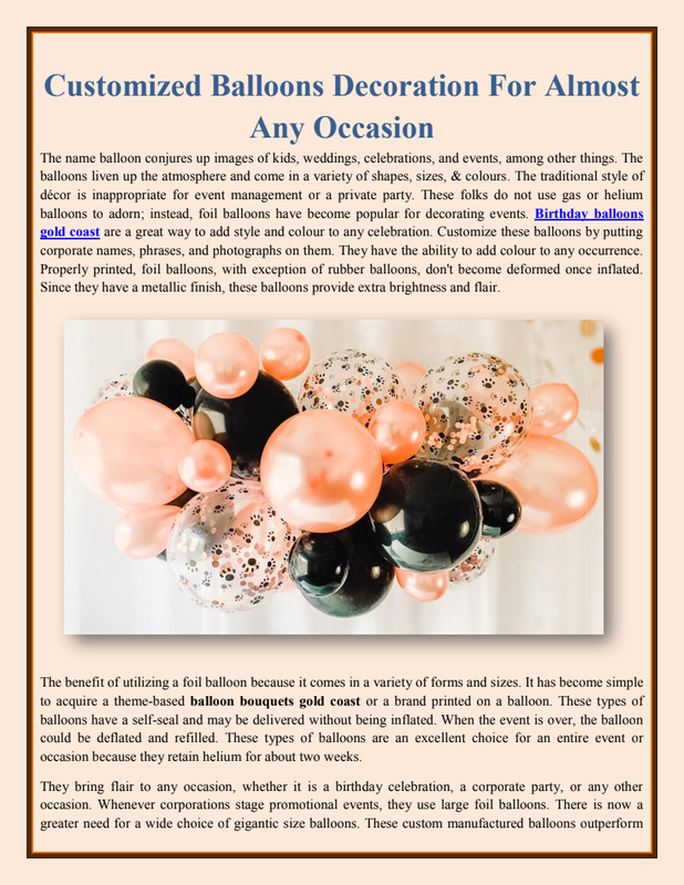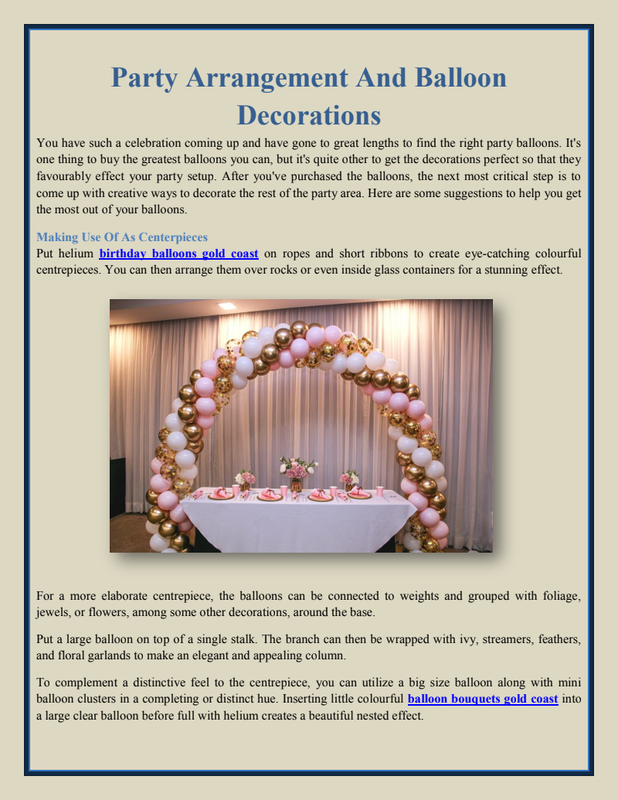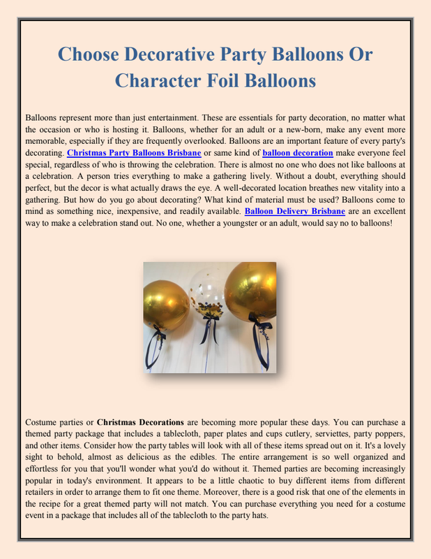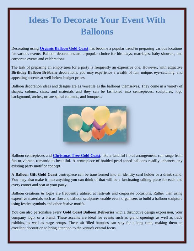 Balloons make very elegant and lovely decorations at parties. To satisfy your dreams of experiencing the tranquility and awe-inspiring excitement of a balloon flight, go no further than the online Balloon dealers approved by the Civil Aviation Authority. Organic Balloon Gold Coast is pretty excellent.Balloons, the universal party supply of choice, may be found at stores all around the globe. As a result of the industry's meteoric rise, balloon retailers have sprung up all over the world. In the past, balloon stores catered mostly to children and may be seen throughout local streets. Christmas Tree Gold Coast is actually outstanding.The company grew to new heights as more and more individuals entered the mainstream balloon industry. People with big dreams saw a global rise in the demand for balloons, so some of them began selling them online. Because of this, there are now online balloon stores as well. Christmas Party Balloons Brisbane will always help you out.Elegant balloon bouquets have always been a go-to for any balloon decoration. Whether as a centerpiece or a take-home gift, a variety of colorful balloons artfully arranged to wow your visitors is a certain way to make your celebration one they won't soon forget. The decorations are one of the components of getting ready for a party or event that takes the biggest amount of time. It may be pretty challenging, especially when there is a lot resting on your shoulders and you are working within a limited financial budget. Christmas Decorations are incomplete without balloons.The good news is that learning how to become an expert in the art of balloon decorating is rather simple. There is a plethora of information and tutorials about to balloon decorating that can be found online.