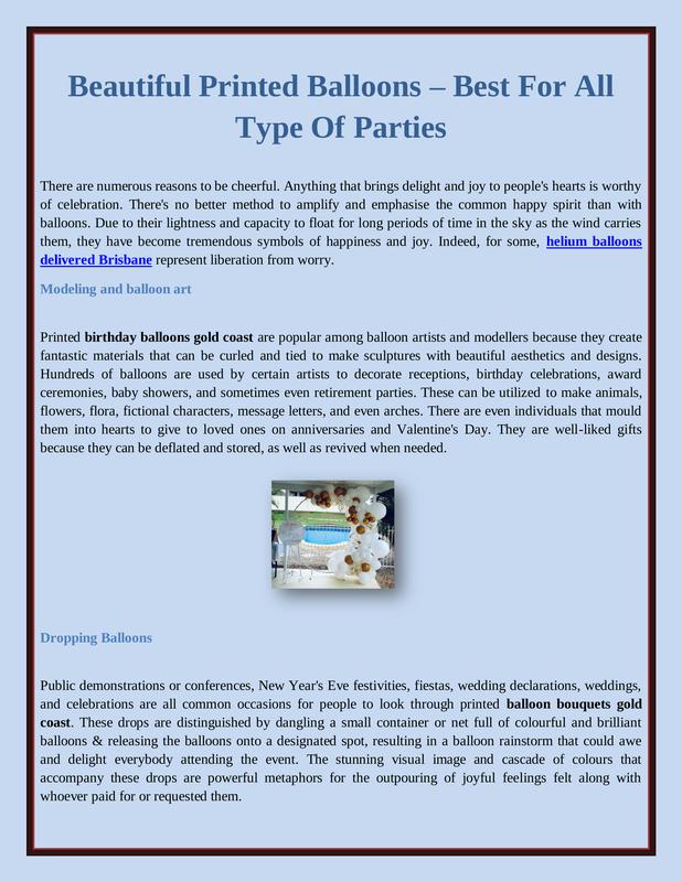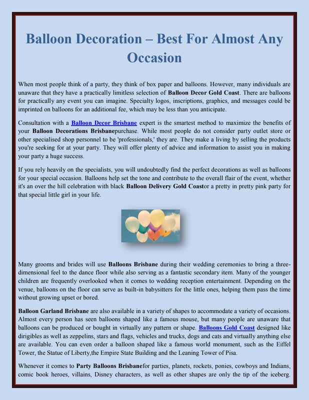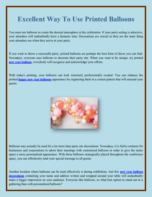 The ordinary range of inflatables balloon has an opaque surface, whereas the pearls shine variety of inflatable boats with shine and lustre is excellent for exceptional, high-profile activities.Article source : https://www.bloggingpalace.com/customized-balloons-decoration-for-almost-any-occasion/