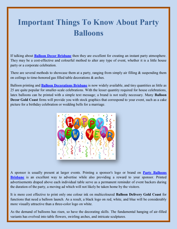 Party Balloons Gold Coast are an equally gorgeous and less expensive way to liven up a vacant party venue. These spiral decorations provide an exquisite approach to transform a simple dance floor or entertainment center into the focal point of the celebration.