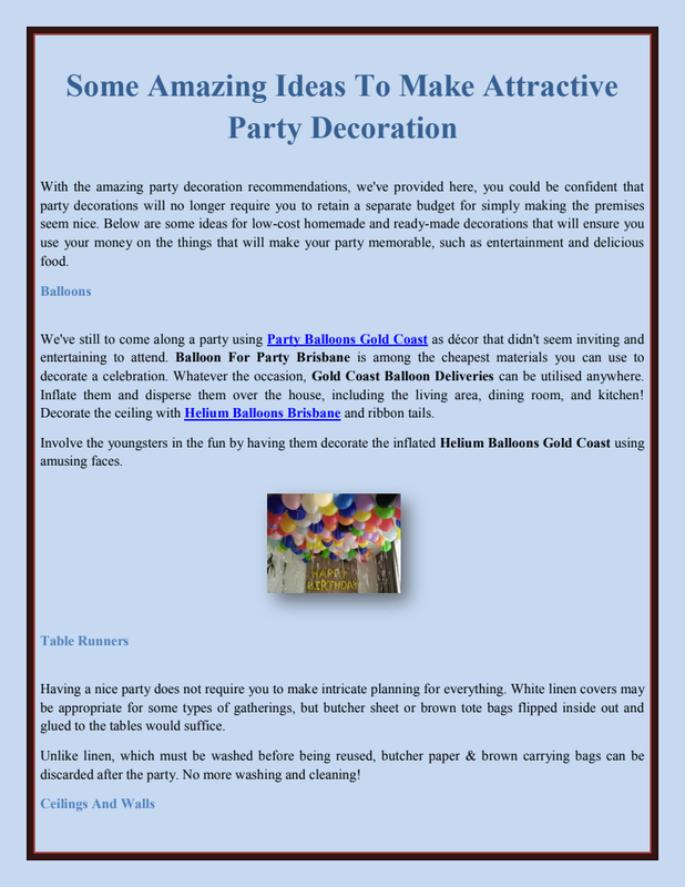 A sponsor is usually present at larger events. Printing a sponsor's logo or brand on Party Balloons Brisbane is an excellent way to advertise while also providing a reward to your sponsor. Printed advertisements draped above each individual table serve as a permanent reminder of event backers during the duration of the party, a moving ad which will not likely be taken home by the visitors.