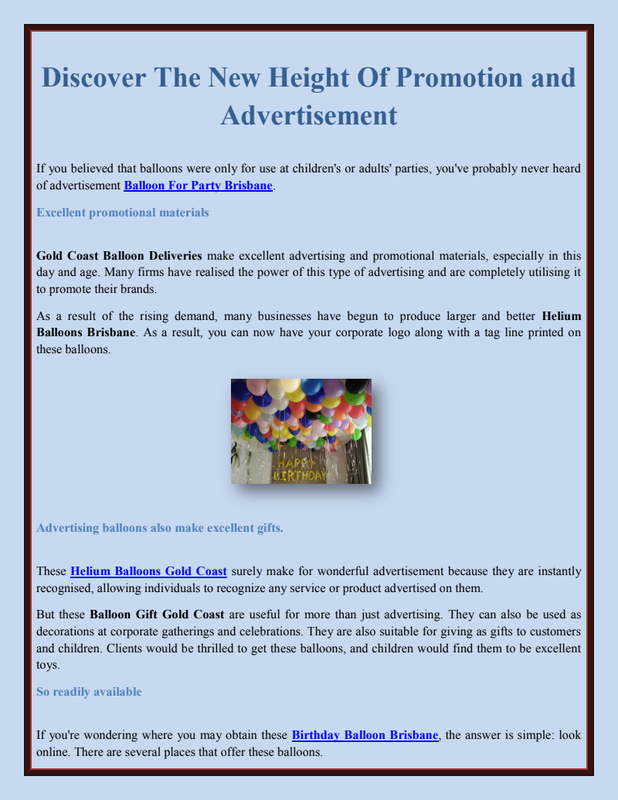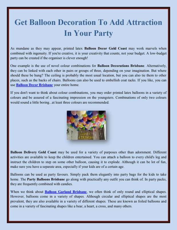 They are a must-have for every party planner seeking to promote fun, excitement, and colour. They have an instant impact on your guests, relaxing them and creating a party mood.When it comes to blowing your latex Balloons Gold Coast with helium, you have numerous options. To begin, it is important to note that they'll only float for about twenty hours, therefore they will need to be inflated on the day of the event.