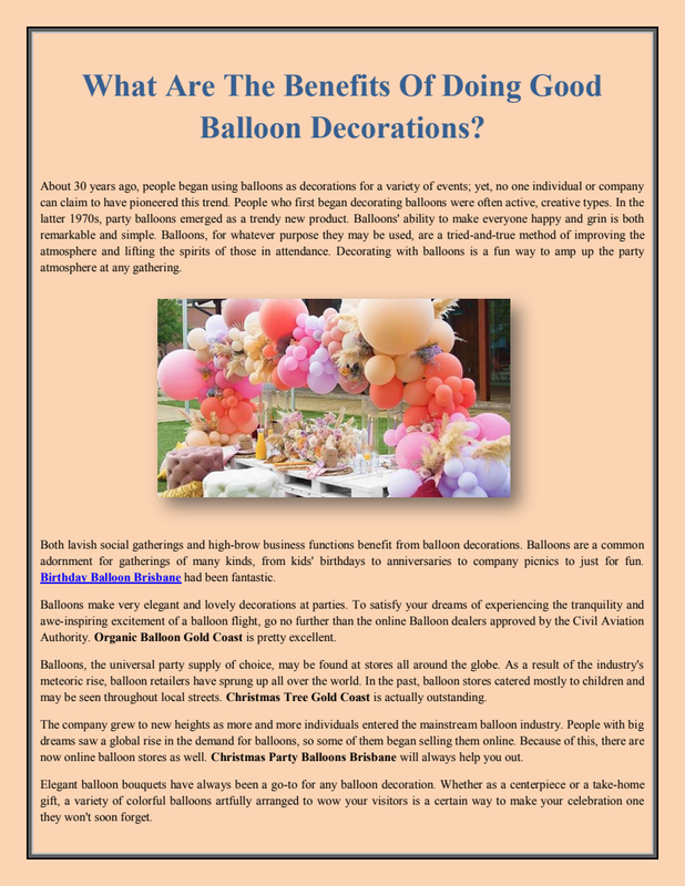 Decorations are one of the most time-consuming aspects of party and event preparation. When there is a lot riding on your shoulders and you're working on a strict budget, it may be quite difficult. Luckily, mastering the art of balloon decorating is a breeze to learn. Balloon decorating ideas and how-to guides are abundant online. Balloons Brisbane will always be the best ever.