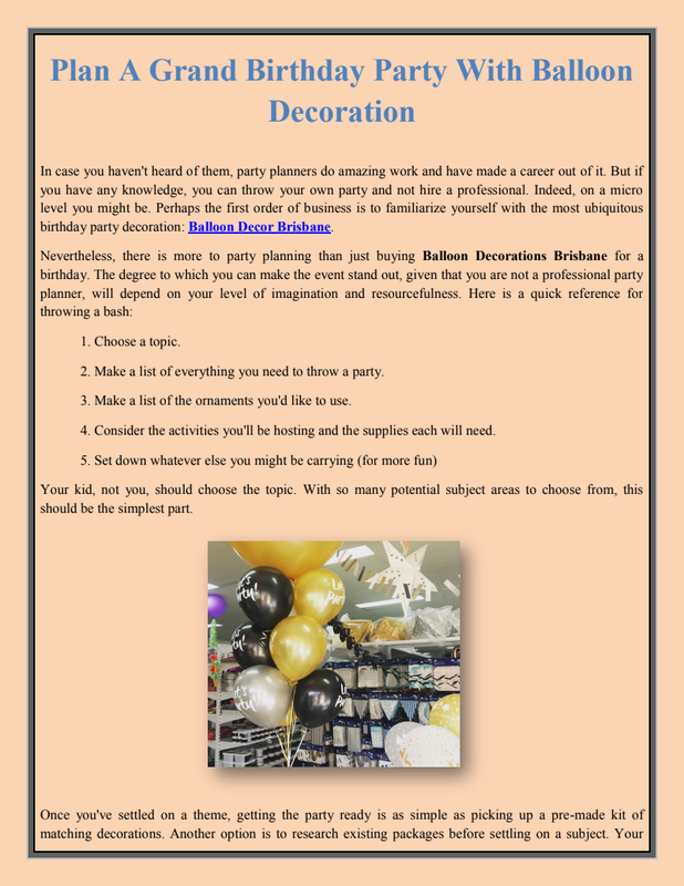 A party balloon is the perfect addition to any upcoming celebration. You shouldn't stress too much about coming up with original ideas; just combine several styles for a stunning display. Adding some party balloons to the room will give it the dramatic effect you want. Balloon Garland Brisbane has been pretty outstanding.